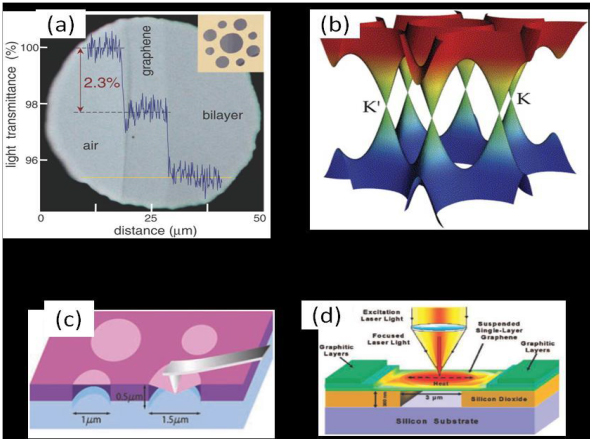 石墨烯的光學、電學、力學以及熱學特性示意圖